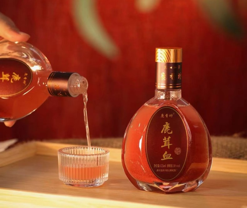 在博览会现场,五棵树酒厂的展台上,鹿鞭酒、灵芝枸杞酒、鹿茸血酒等系列佳酿琳琅满目。鹿鞭酒酒体澄澈,蕴含着传统滋补智慧;灵芝枸杞酒色泽金黄,散发着草本与酒香的交融气息;鹿茸血酒红韵醇厚,每一滴都承载着非遗酿造的匠心。这些佳酿不仅是味觉的盛宴,更是五棵树酒厂传统蒸馏酒酿造技艺的生动体现。